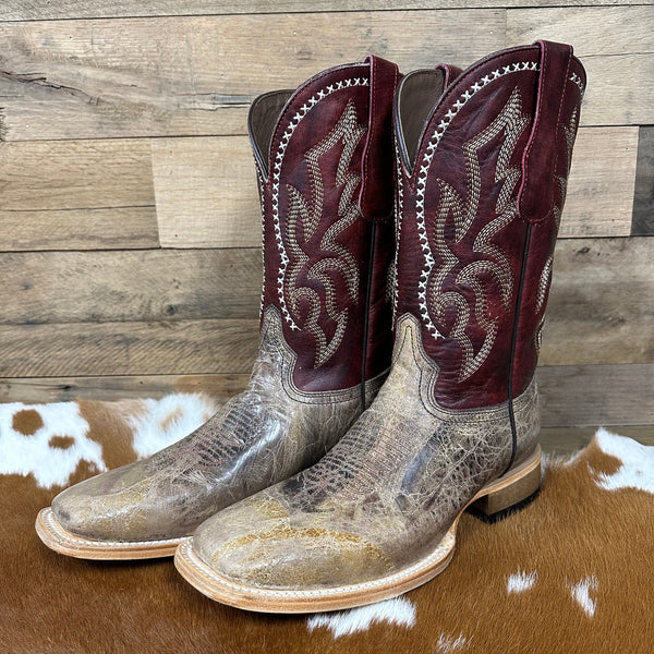 Circle G Men's Bone Embroidered Wide Square Toe Boot