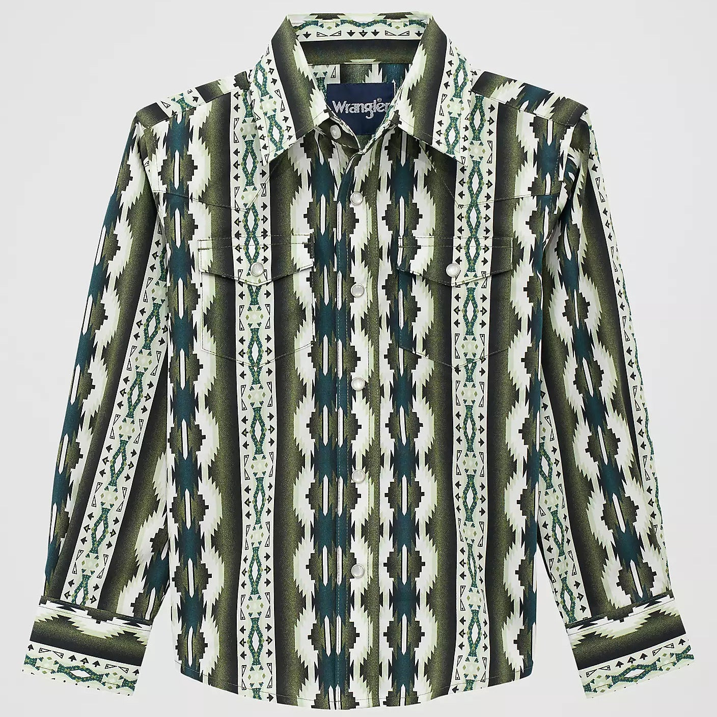 Wrangler Boy's Checotah L/S Western Snap Shirt in Olivine
