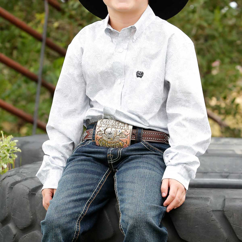 Cinch Youth Boy's S/S Hayin' Season Camp Shirt in Blue