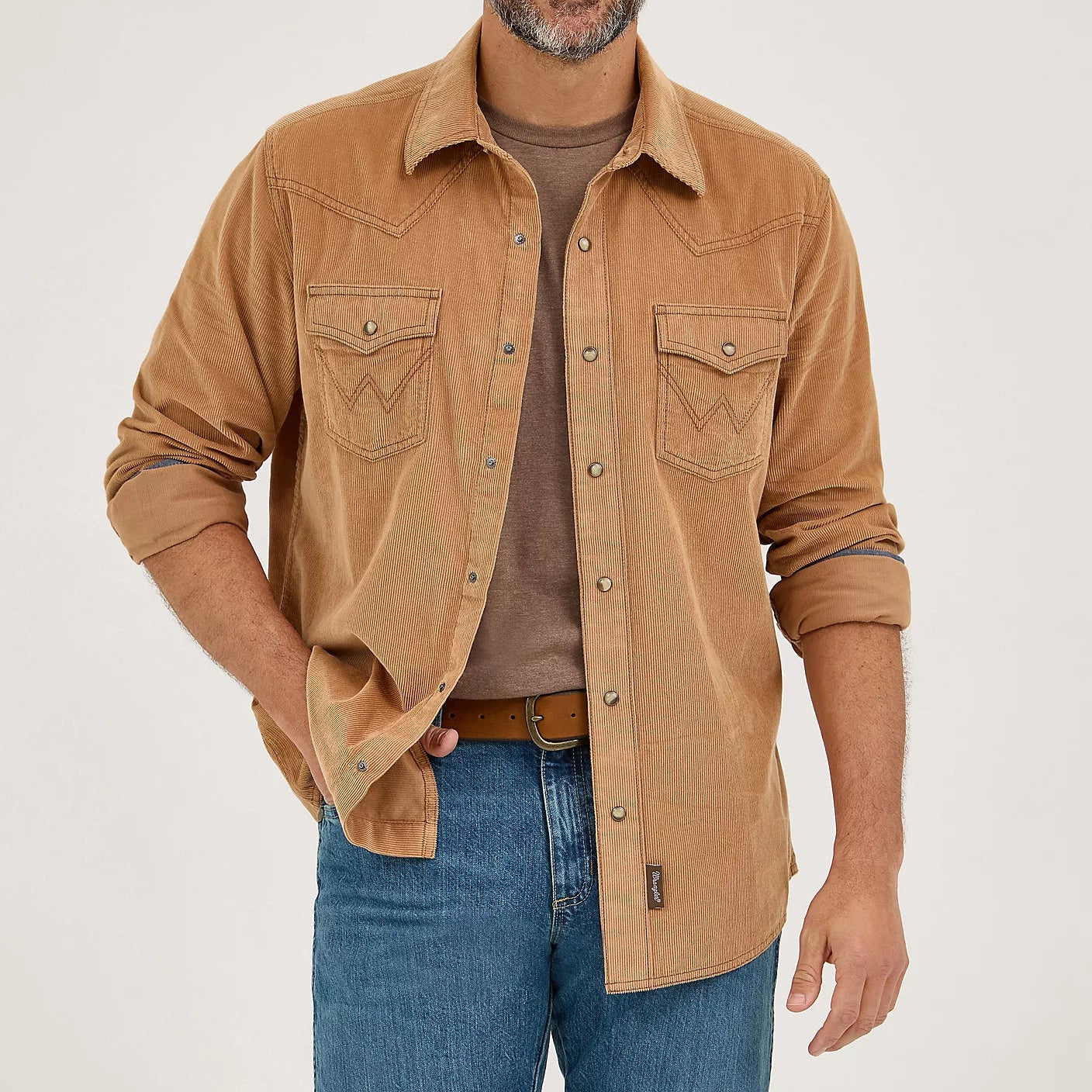 Wrangler Retro Premium Men's L/S Western Corduroy Snap Shirt in Sandy Brown