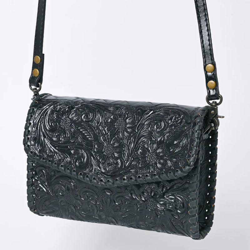 American Darling Hand Tooled Floral Leather Wallet Bag Western Purse in Black