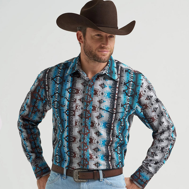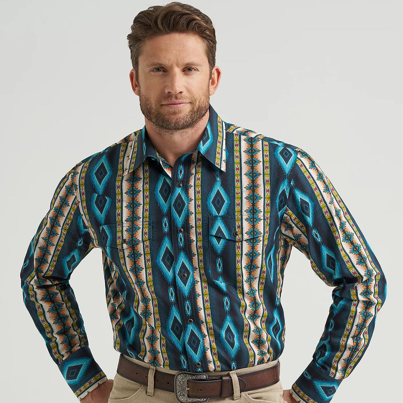 Scully Men's L/S Signature Solid Western Snap Dress Shirt in Blue