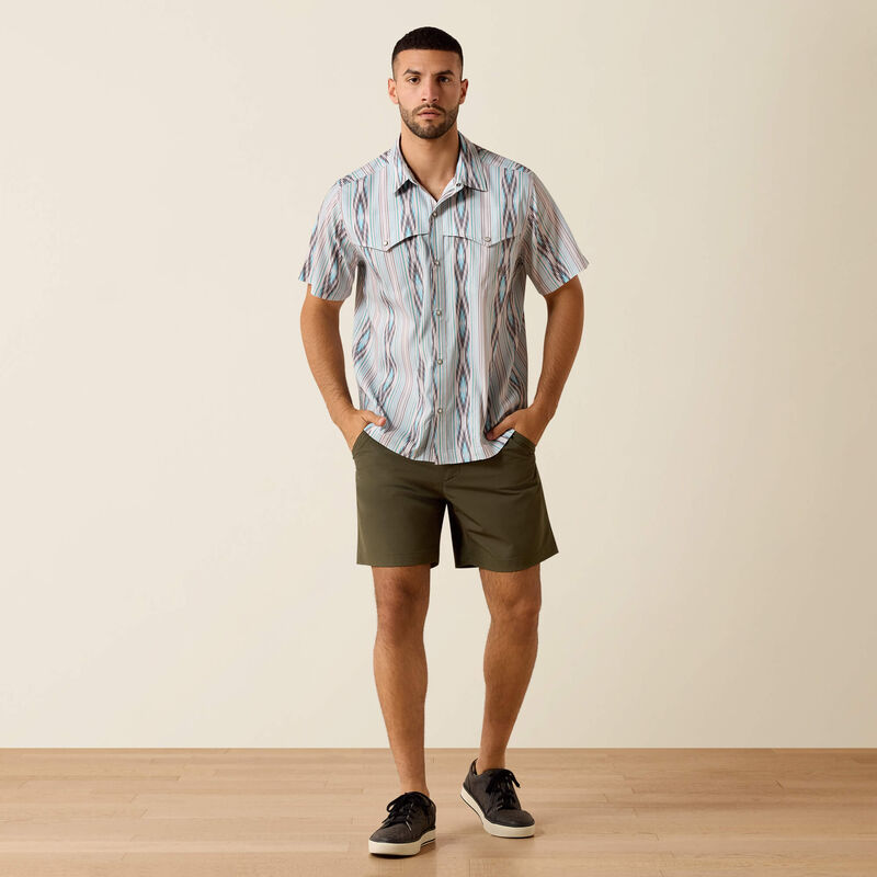 Ariat Men's S/S Printed VentTEK Western Yoke Classic Fit Snap Shirt in Moonbeam