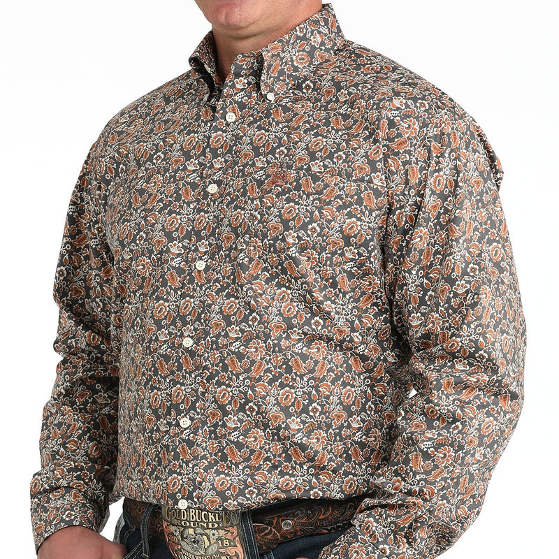 Scully Men's Floral Embroidered Western Snap Shirt in Black and Gold