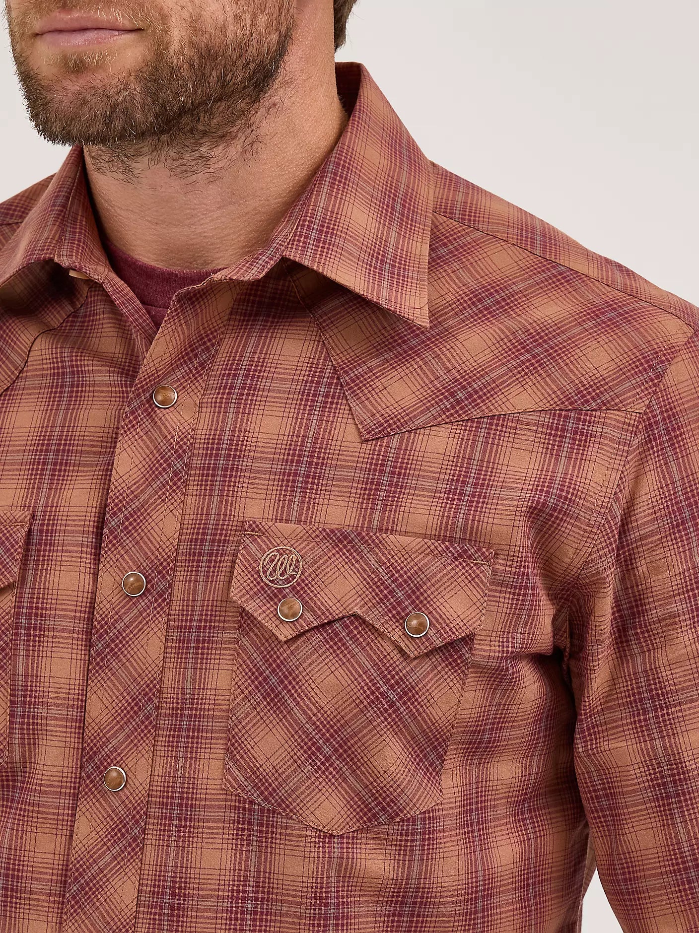 Wrangler Retro Men's L/S Sawtooth Pocket Plaid Western Snap Shirt in Harvest Plaid (Available in Tall Sizes)