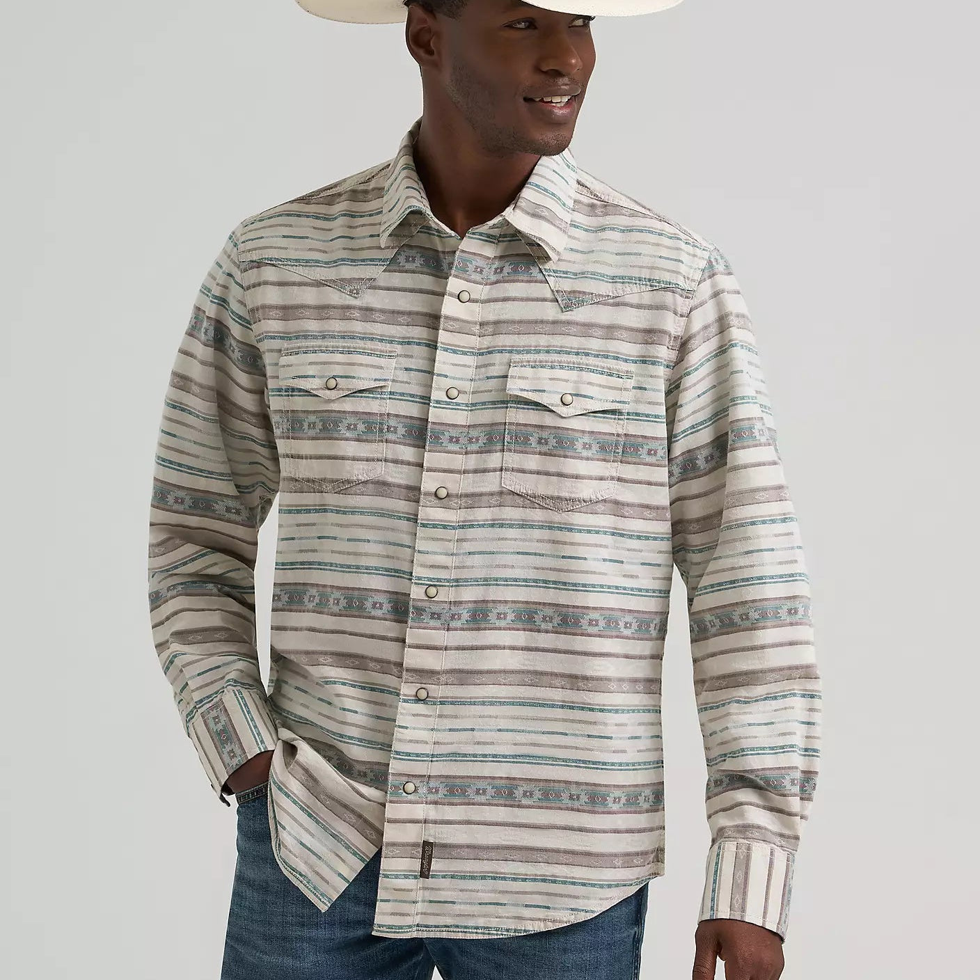 Wrangler Retro Premium Men's L/S Western Snap Shirt in Neutral Serape (Available in Tall Sizes)
