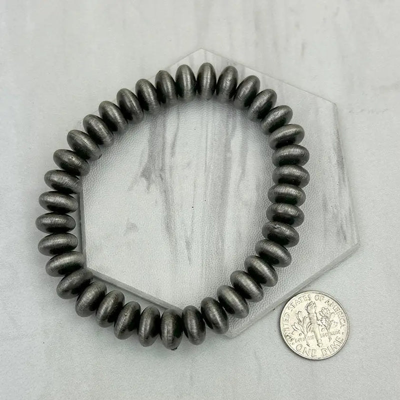 10MM Silver Navajo Inspired Rondelle Stretch Bracelet