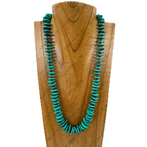 23" Green Turquoise Flat Beaded Necklace