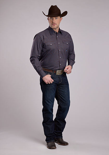 The Roper Men's Long Sleeve Amarillo Medallion Print Western Snap Shirt in brown combines classic western style with everyday comfort. Featuring a snap front closure, curved yokes, and functional pockets, this shirt is designed to support your lifestyle. The distinctive medallion pattern showcases quality craftsmanship, while dual snap cuffs provide a secure fit. Perfect paired with jeans and boots for an authentic look you can rely on.