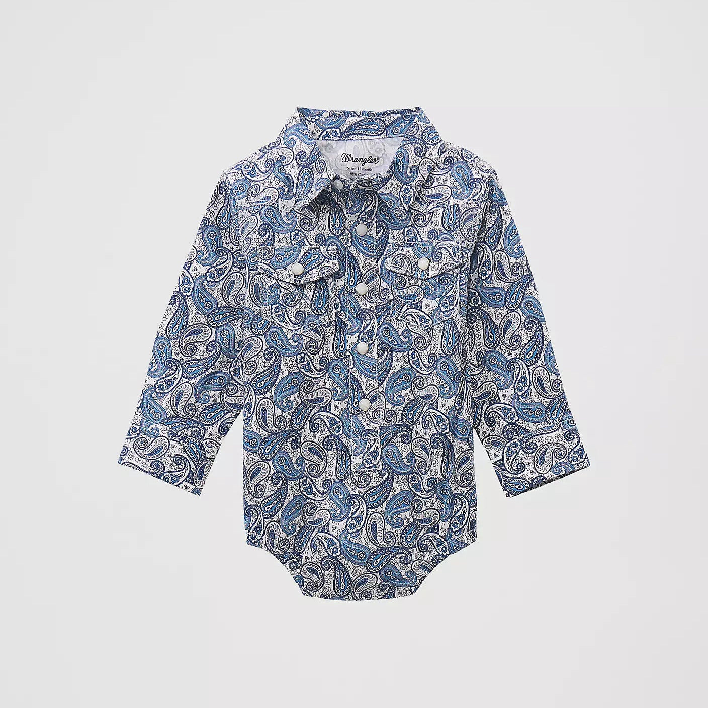 Wrangler Baby Boy's L/S Western Snap Shirt Body Suit in Wavy Paisley