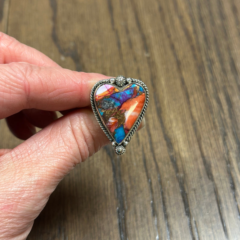 Martha Martinez Navajo Handmade Sterling Silver Spiny Oyster Ring (Adjustable)