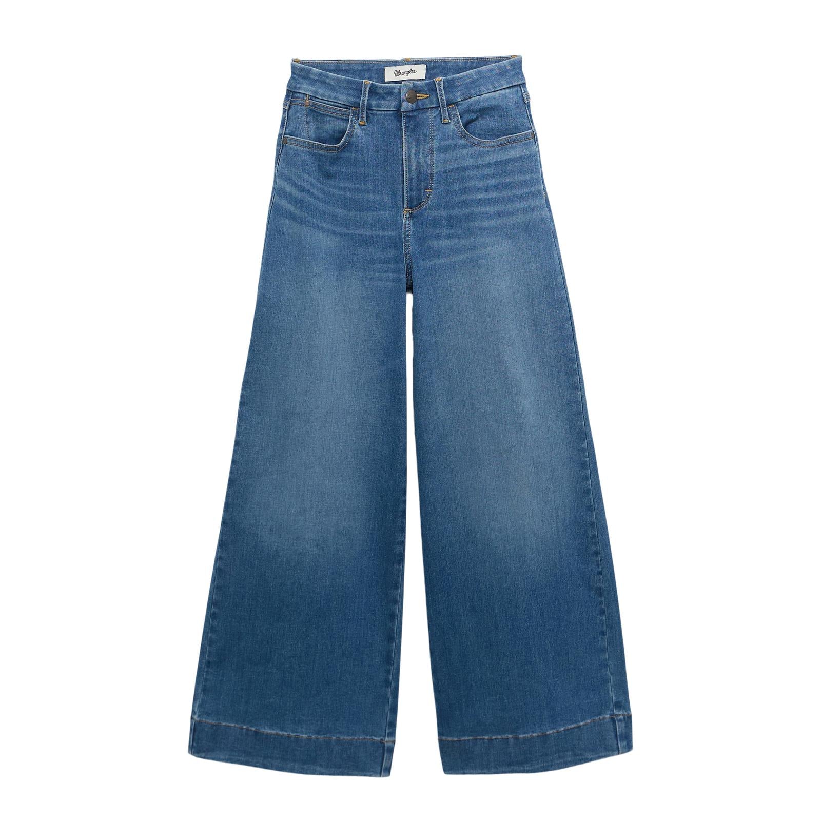 Meet your new favorite. The Women’s Wrangler® Bespoke Wide Leg Crop is crafted with ultra-soft, high-recovery fabric that hugs your shape without holding you back. It features a flattering high-rise waistline, a fitted silhouette through the hips, and a wide leg from the thigh down, cropped so it lands above the ankle for maximum versatility but finished with a double-turned hem for the same effect as your go-to trousers. These jeans come with the signature five-pocket styling, ‘W’ stitching, and logo patch. No squeezing, no stiffness, no awkward fits. Just jeans that feel and look good from the first wear to the hundredth.