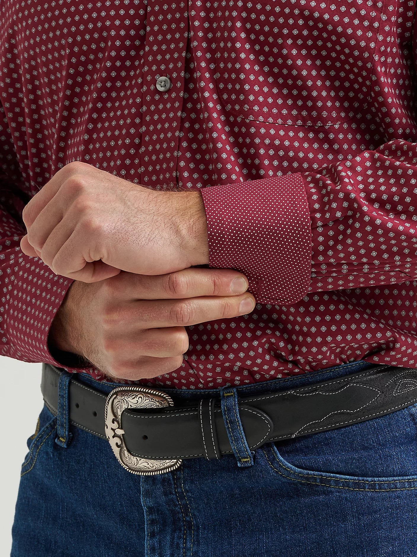 Wrangler Men's L/S George Strait Button Down Shirt in Burgundy Dot (Available in Plus Sizes)