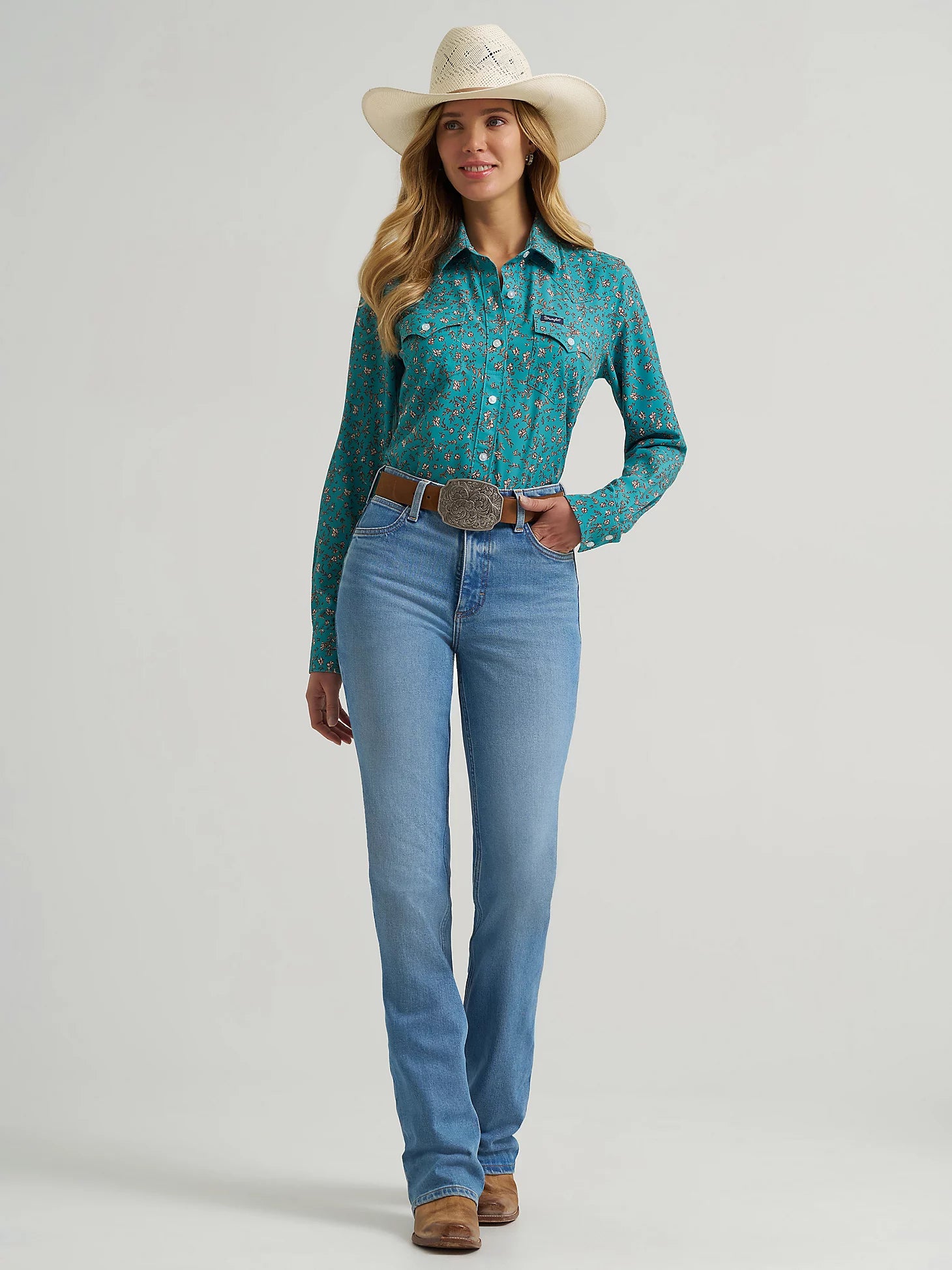 Wrangler Women's L/S Aria Performance Button Up Shirt in Green