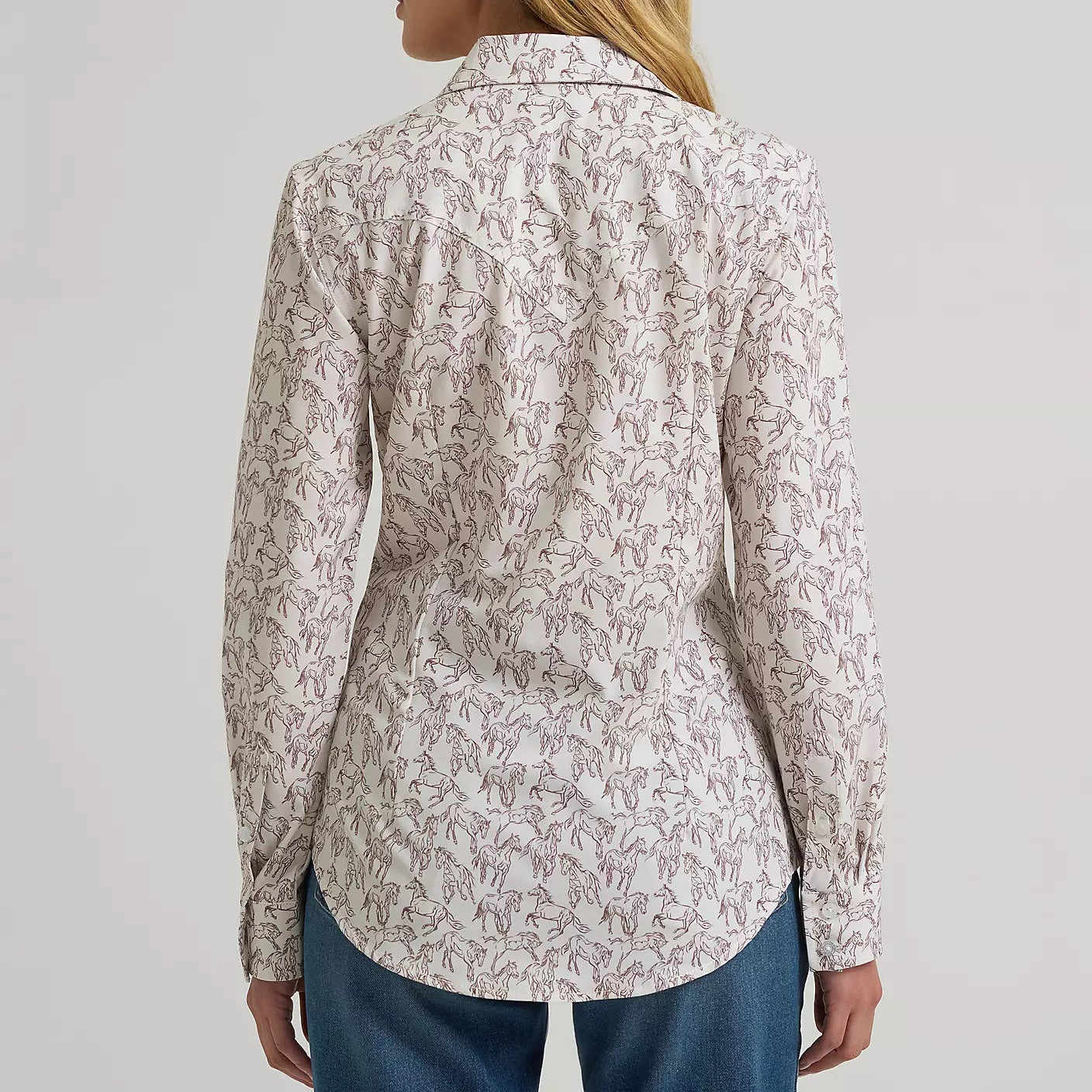 Wrangler Women's L/S Aria Performance Button Up Shirt in White Horse Print